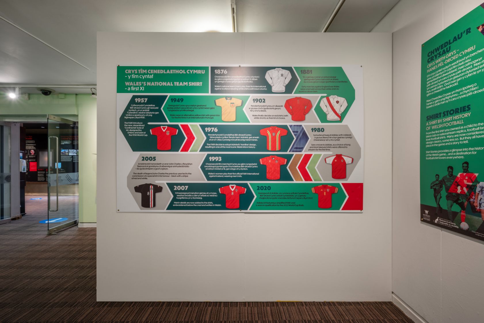 Mae Chwedlau’r Crysau’n adrodd hanes pêl-droed Cymru drwy’r crysau dethol sydd yng Nghasgliad Pêl-droed Cymru a rhai ar fenthyg gan unigolion preifat. Mae’r detholiad yn amlygu stori pêl-droed dynion a merched, ar lefel genedlaethol a lefel clybiau. Wedi’i hamseru i gyd-fynd â’r paratoadau at Gwpan y Byd yn Qatar, mae’r arddangosfa’n cynnwys: